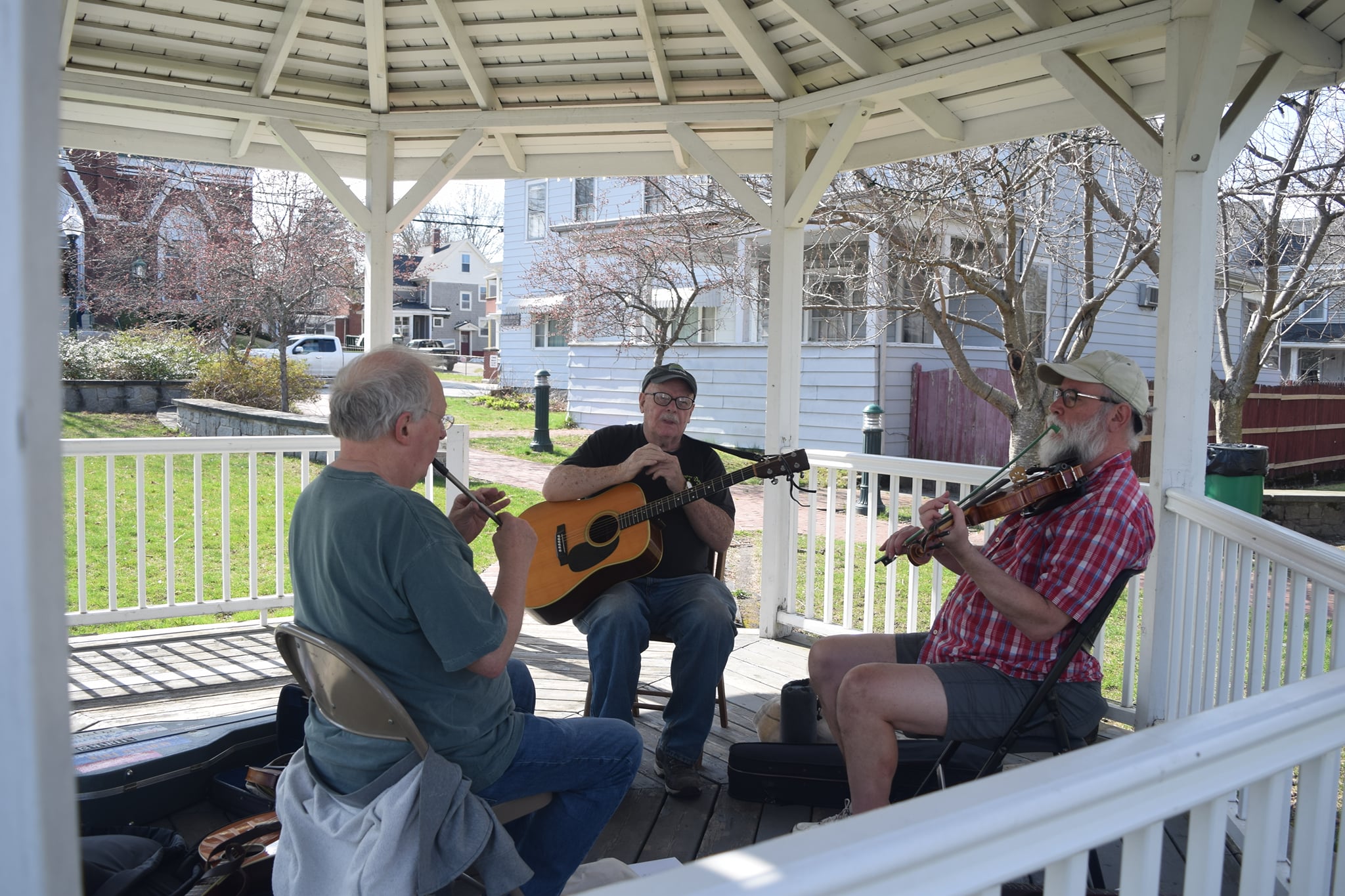6 Gilmanton– squares off like Lennon mumbling “sugarplum fairies, sugarplum fairies” catechizing all to keep faith with the tempo but not hinting at the impending bliss: a tune that calls upon virtually every note in the scale. Rivaling Robert Schumann’s Happy Farmer, I hum along before the first listening is through and keep it handy, adding to my limited repertoire of tunes to rehearse while mowing my lawn or engaged in mindless repetitive tasks. Here is an alternative cure to jam the endless, looping broadcasts of tenacious virus jingles, ruminations on slights recently sustained, and the retrial of grudges half a century old which I cannot cease to prosecute when alone with my poison habits of thought.